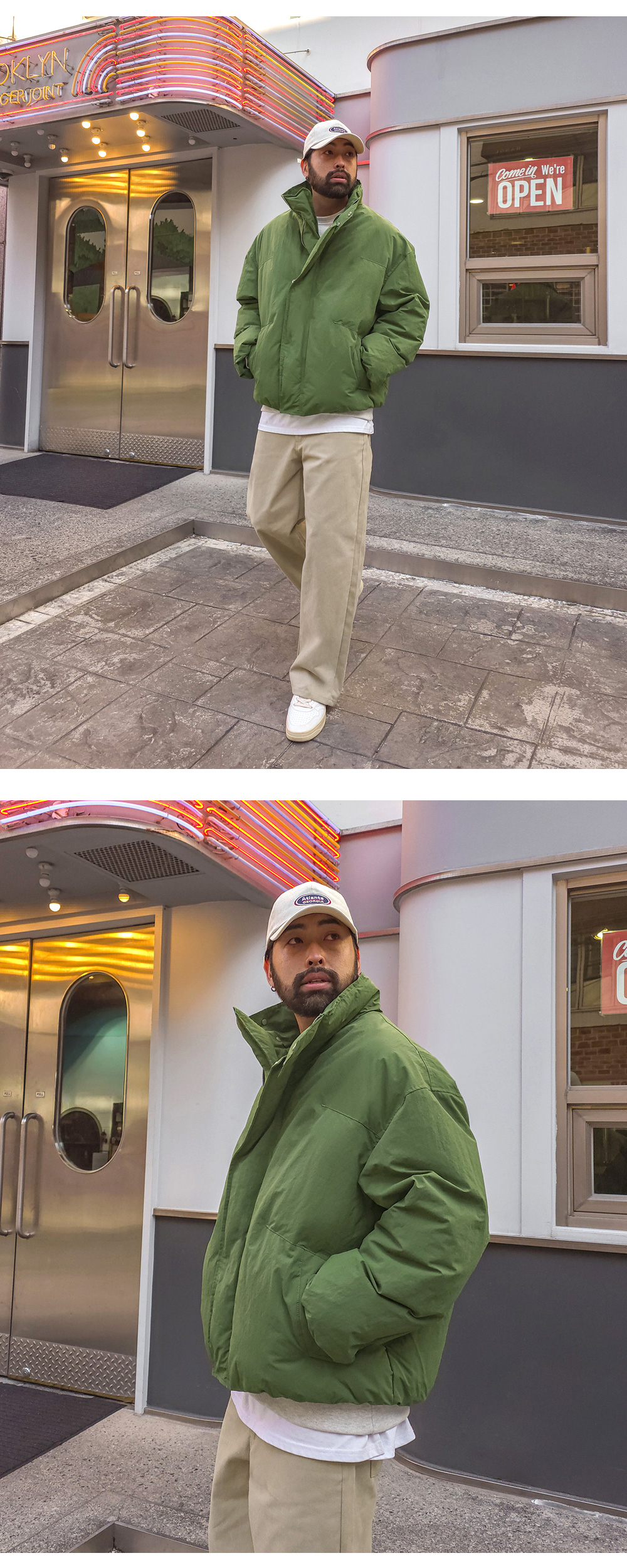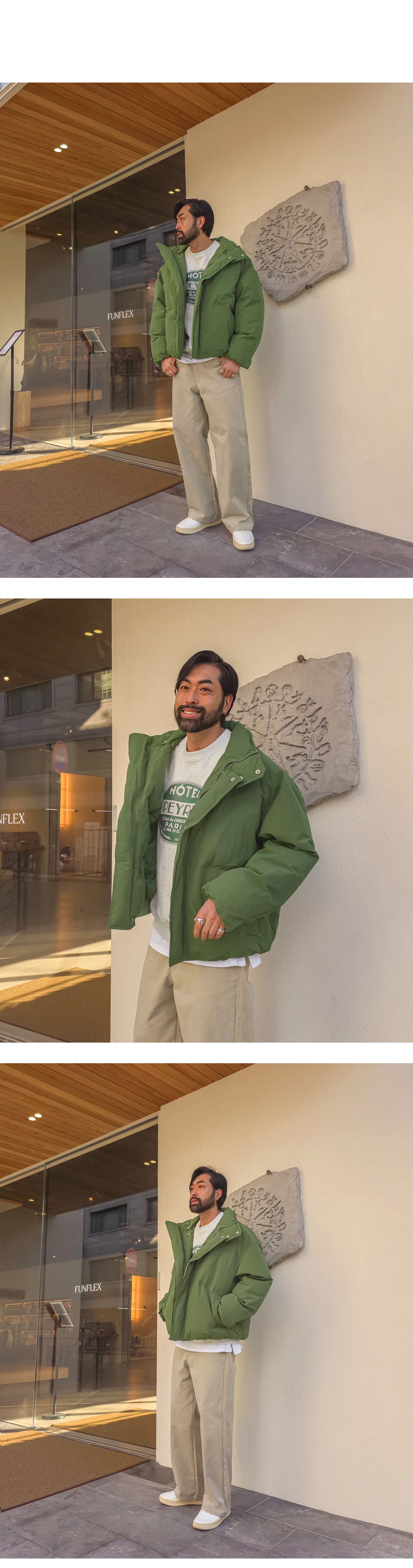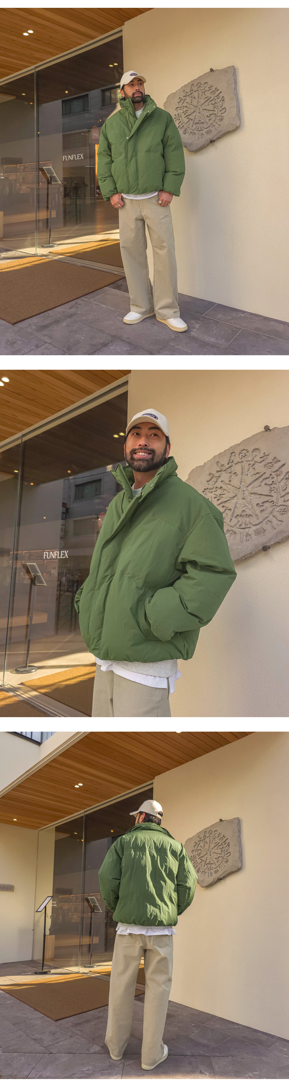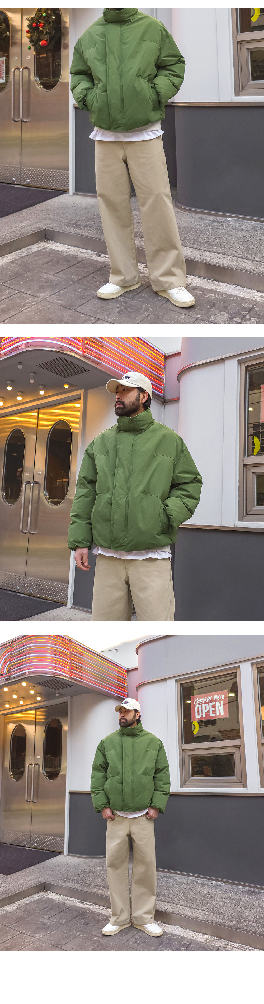 오까네에서 선보이는 패딩입니다. 웰론 충전재와 이중잠금과 반목으로 제작되어 보온성을 유지해주고 소매,밑단 시보리가 안쪽으로 제작되어 유니크한 느낌을 주며 코디에 따라 홈웨어룩, 캐주얼룩, 스트릿룩 등 활용하기 좋아 고객님들께 추천드리는 아이템이며 핏 또한 오버핏으로 여유로운 피팅감을 느끼실 수 있습니다. SIZE XL-2XL,3XL-4XL,5XL-6XL 모델착용 [KIHOON]색상 : 카키,그레이 / 사이즈 : XL-2XL ![]() ![]()