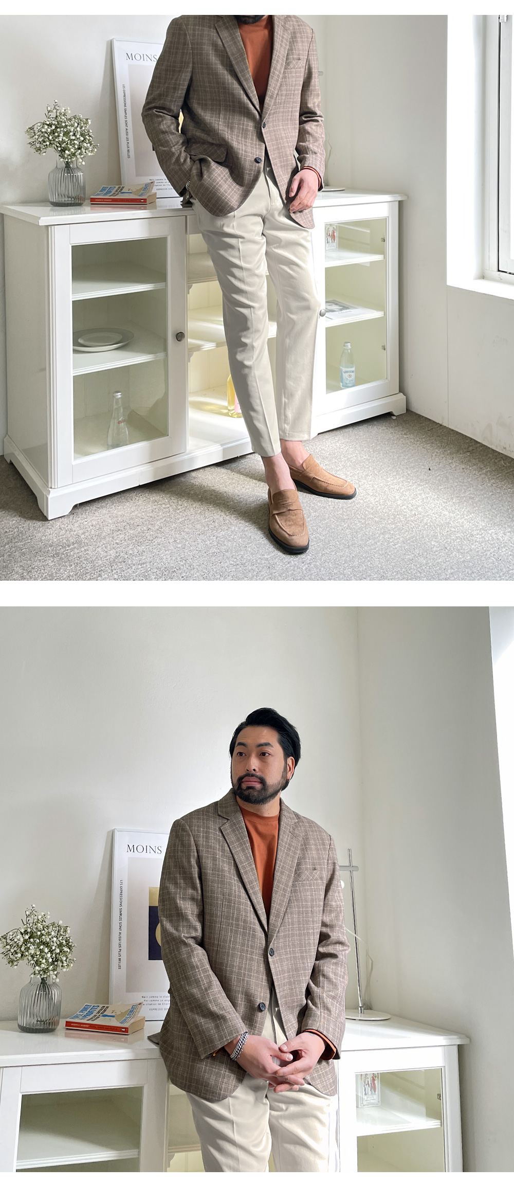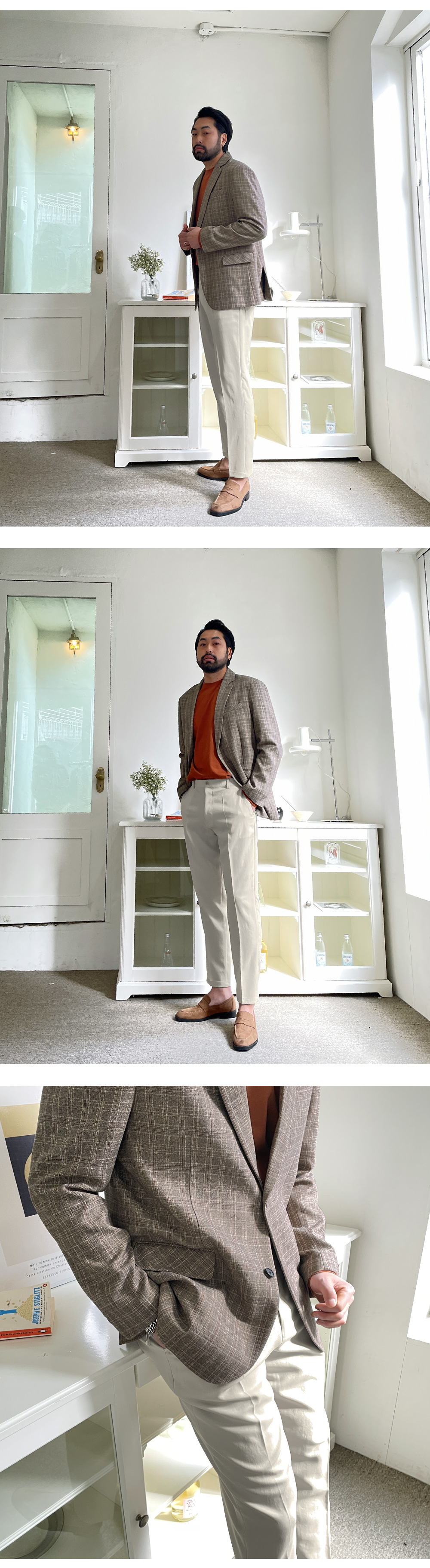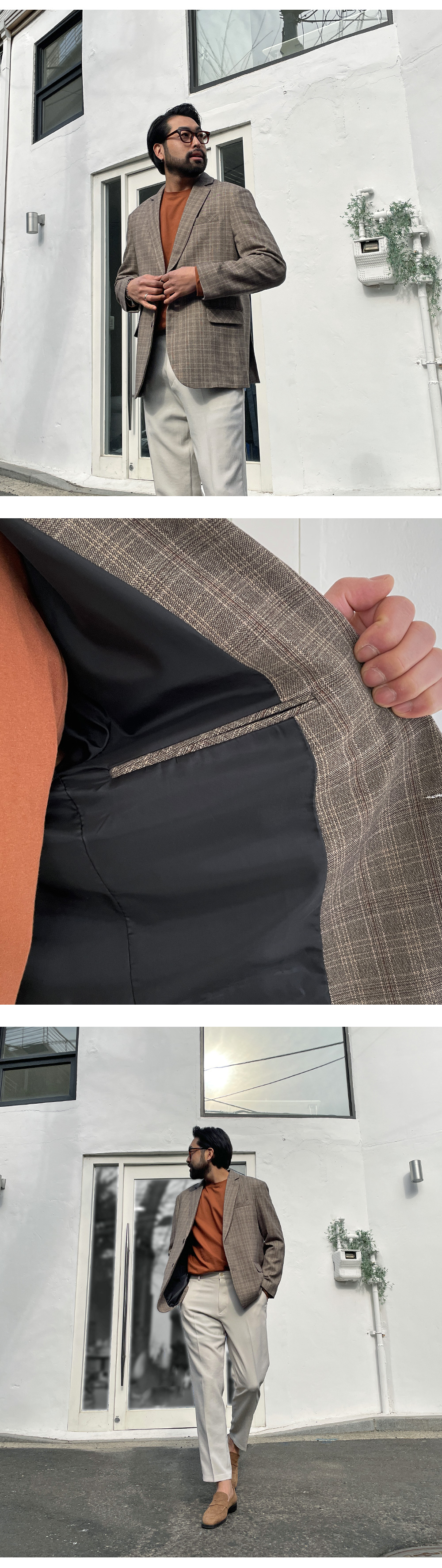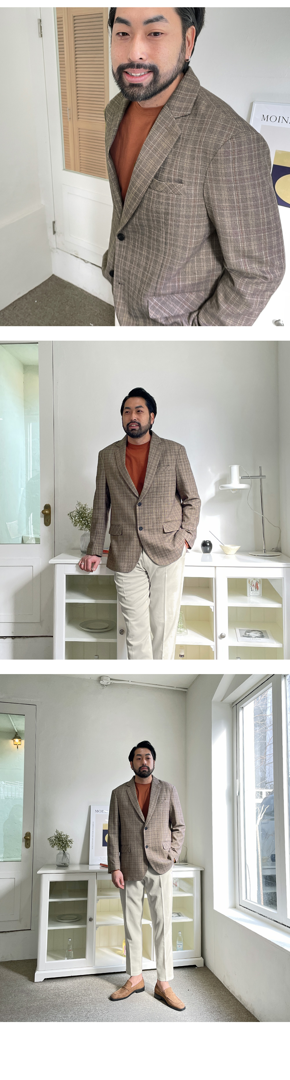 포근한 느낌의 체크패턴 자켓입니다. 봄, 가을에 걸치기 좋은 두께감은 물론 이너 포켓까지 있어 수납 활용이 좋고 밋밋하지 않은 체크 패턴으로 포인트 주었으며 슬랙스, 면팬츠, 데님 팬츠 등 다양한 하의와 코디하여 댄디룩, 출근 룩등 여러 스타일링을 하실 수 있고 핏 또한 루즈 핏으로 여유있는 착용감을 느끼실 수 있습니다. SIZE M-L(3번),XL(4번),2XL(5번),3XL(6번) 모델착용 [KIHOON]색상 : 베이지톤 / 사이즈 : XL(4번) ![]() ![]() ![]() ![]() ![]() ![]() ![]() ![]()
